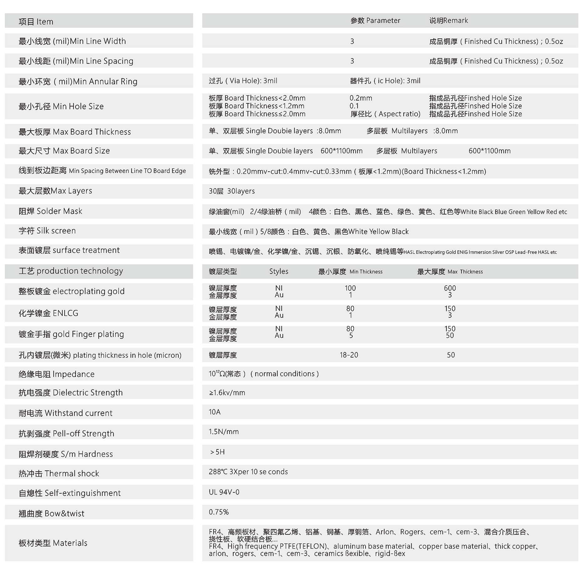 ◆工艺能力